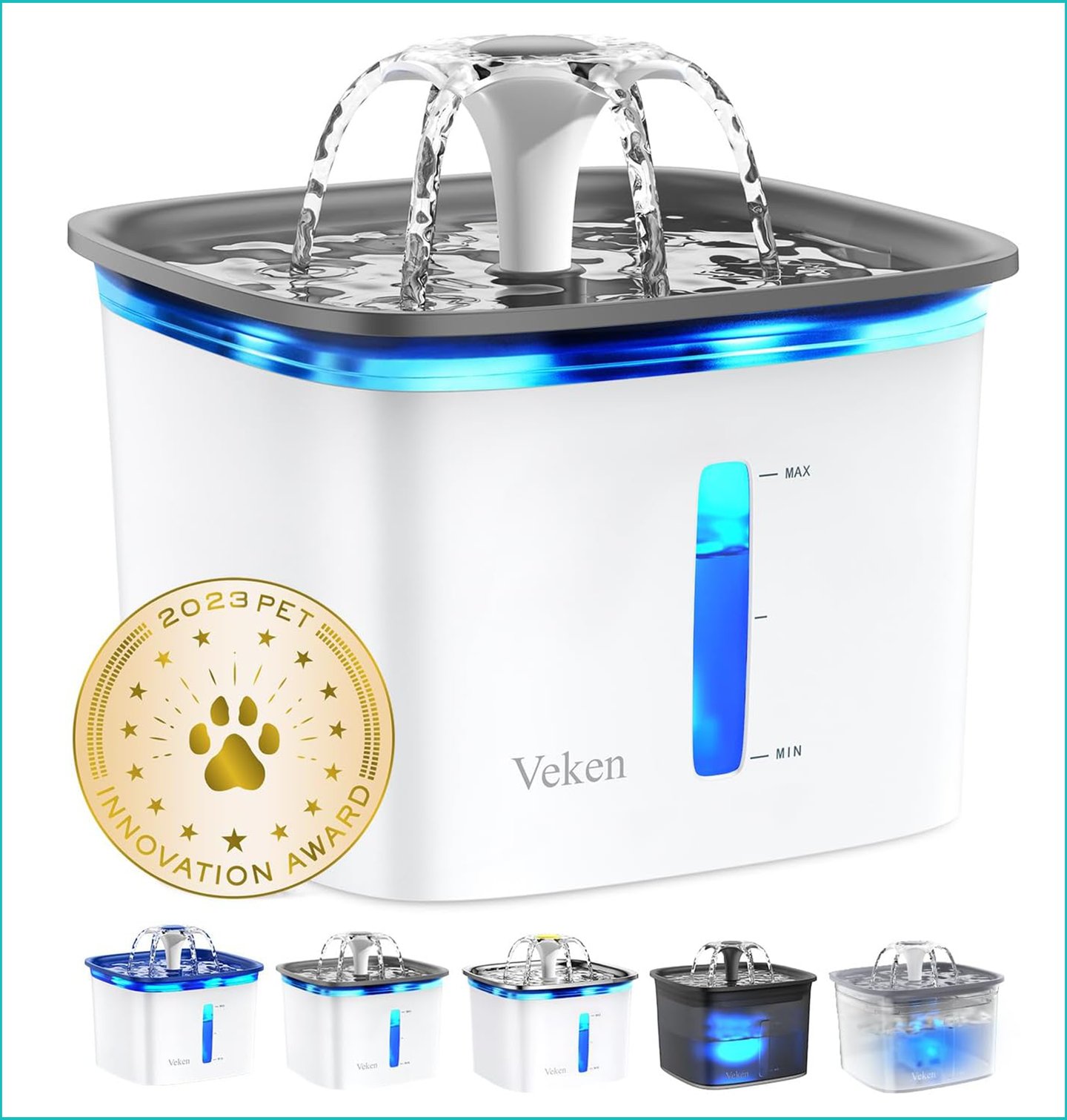 The Veken Cat Water Fountain is designed to provide pets with fresh, clean and continuously flowing water, helping encourage better hydration for cats and small dogs. With its award winning design, advanced filtration system and quiet pump, it has become a popular choice among pet owners looking for a convenient and hygienic water solution for their pets.
